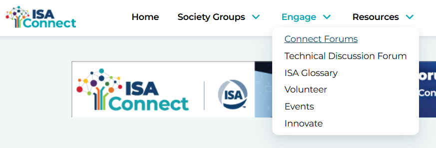 Posting on Connect Forums is simple. First, you will need to log in to your member account in ISA Connect. Under the tab “Engage,” navigate to Connect Forums.