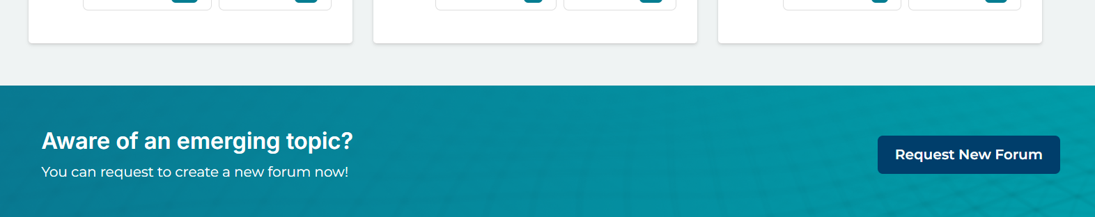 To suggest a new forum on a topic not yet offered, select “Request New Forum,” fill out the form and click submit.