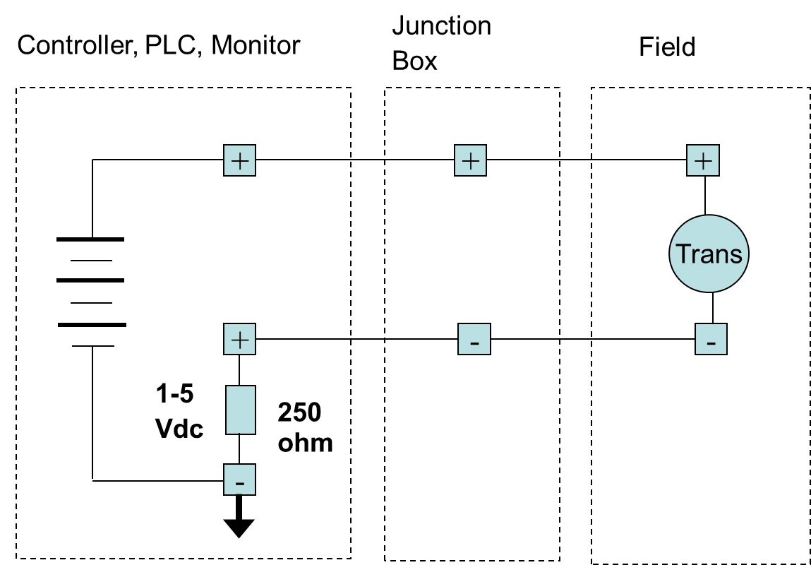 This illustrates a series loop. In practice, engineers rarely wire devices in a series as any failure could fail loop and/or loop resistance would be too high.