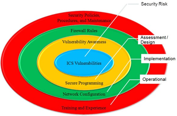 These systems must be online and operational. By locating critical components within the most trusted layer, they are more difficult to access since multiple other layers need to be compromised first. Process control communications should be given the highest quality of service priority within this level. Using a layered approach to network architecture provides multiple levels of protection for critical process components, and the organization and security of this architecture can be further refined through additional network segmentation for a complete defense-in-depth strategy.