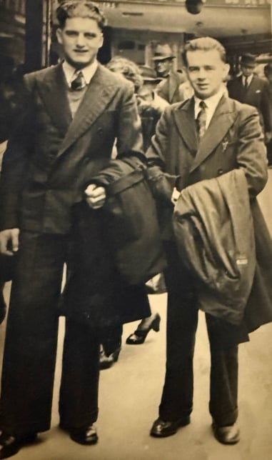 My father (left) with a colleague in Auckland, weeks after recording the Voice-O-Graph
