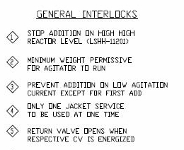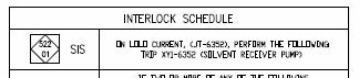 There are lots of ways to show interlocks but probably the best way is shown on SIS_ILOCK and SIS_ILOCK_PUMP. This particular client has an interlock table in the bottom corner of the P&ID with descriptions of the interlock and a number. SIS interlocks are indicated as such, DCS interlocks look the same but have no “SIS” designation, and hardwired interlocks are listed as such in the table and have no square around the interlock number. The use of a unique interlock number makes for easy referencing in the hazops and when interlocks span multiple pages. It is also very handy to have the interlock specifics listed right there during design reviews. Some clients do a similar thing but assign interlock numbers that are unique ONLY TO THAT P&ID. (So every P&ID has an “Interlock 1” that are different from P&ID to P&ID. See P&ID2_ILOCKS.) While this is better than nothing, it gets confusing when an interlock spans across multiple P&IDs. The unique number is a much better way to go.