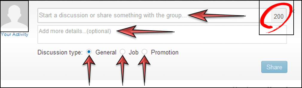 The biggest confusion that I have seen as a manager of ISA’s main LinkedIn group surrounds the two available entry fields and the "Discussion type" options for posting to General, Job or Promotion. The LinkedIn user interface provides poor on-screen guidance on how to post, which directly impacts the appearance of what you post. How hard is it to type some text in a LinkedIn group field and click “Share”? It’s actually not that trivial. With Facebook or Google Plus, you have basically one data entry option; LinkedIn group members are offered three decision points. It’s important to leverage each option to realize the maximum benefit for your posts.