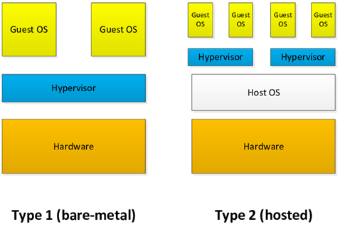 Hypervisor types — bare metal vs. hosted. Image courtesy of Khoa Dang Pham.