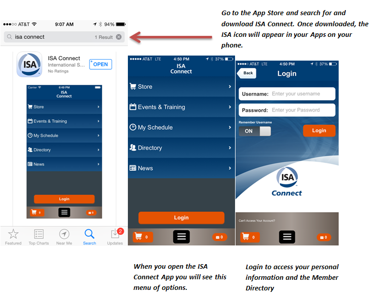 There are other cool features, too, using the Store, Events & Training, and News tabs. Here are a few screen shots that illustrate the functionality of the ISA Connect App. After you take this quick tour, you’ll want to download it on your phone and check it out for yourself!